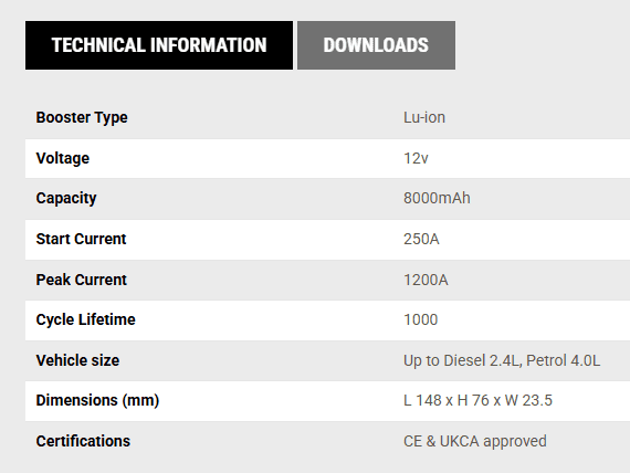 This 12V Li-Ion Mini Booster Pack is a lightweight, ultra-portable solution for emergency starts—capable of jump-starting petrol engines up to 4L and diesel up to 2.4L. With a sleek compact design, built-in LED light, and fast-charging capability, it’s the ideal addition to any glove box or emergency kit—delivering peace of mind wherever the road takes you.