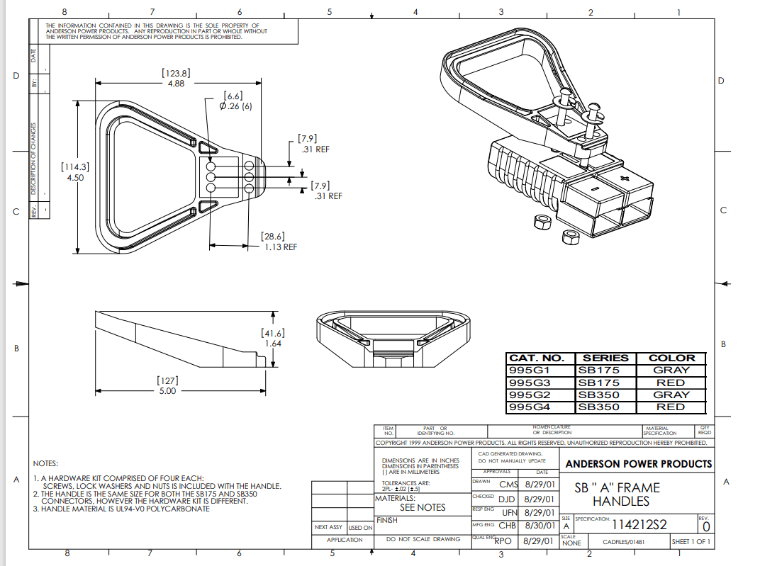 Anderson 995G2 SB350 Grey Handle Kit Anderson 995G4 SB350 Red Handle Kit Easy disconnection/connection with this simple to attach yet sturdy handle. |
