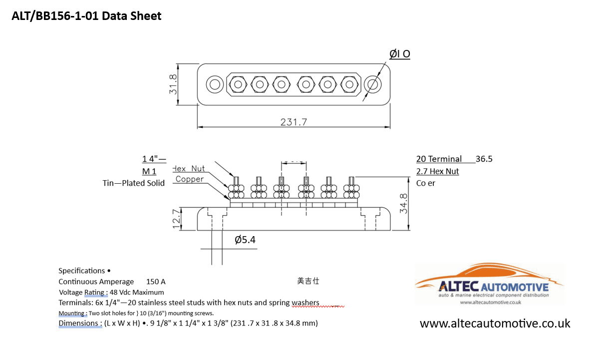 | ALT/BB156 | 6 x 6mm | 150 | 36x230x32 | ALT/BBC4 |