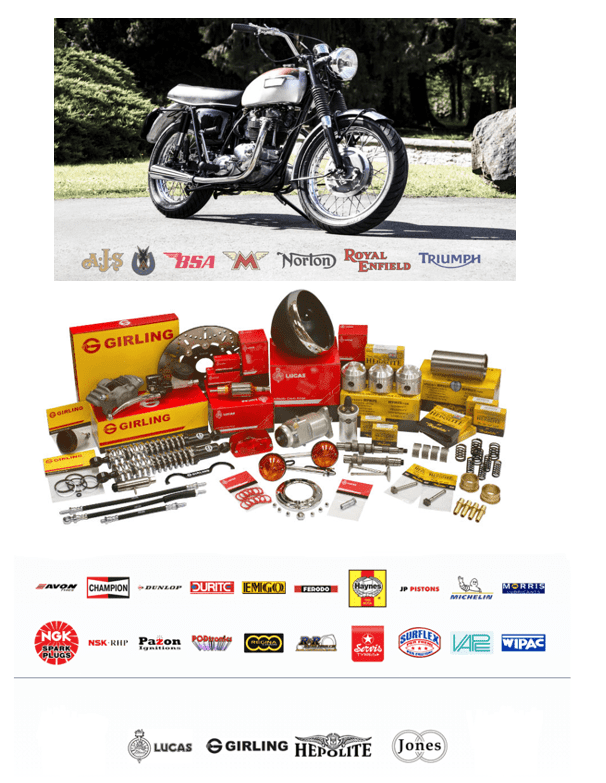 Full range of everything required for your cherished classic British motorcycle.