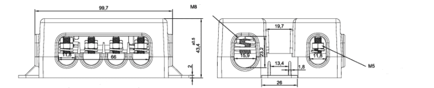 Accepts 1 x MEGA fuse & 4 X MIDI fuses