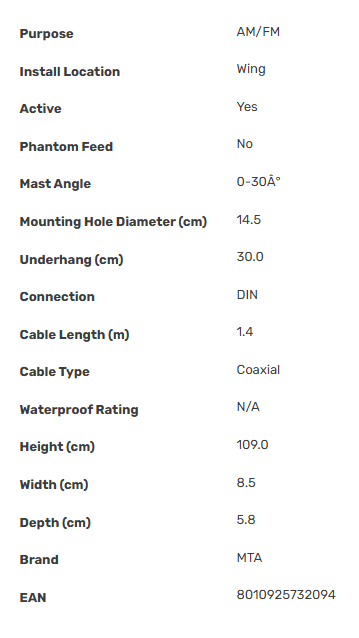 The second generation of MTA wing mount electric antennas are designed with performance in mind. High grade materials have been utilised throughout to create an antenna with excellent and steady reception that will withstand the elements for a long time. The universal fitment allows for easy installation on a huge range of vehicles, while the redesigned base requires less coachwork drilling to fit.