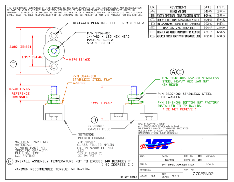 Power Distribution Post 160 Amp POSITIVE - 8mm STUD SINGLE POINT ALT/77131N02-01